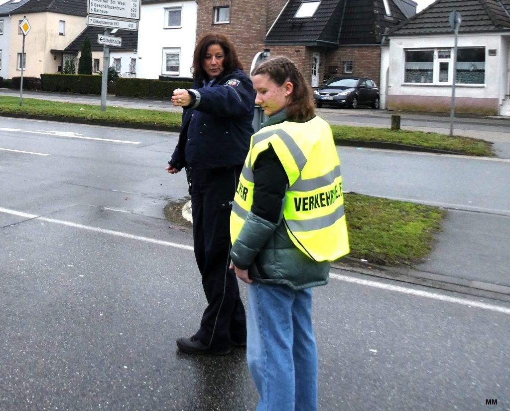Und wenn die Lotsinnen ihren ehrenamtlichen Dienst ausführen, sollten sich alle Schülerinnen und Schüler auch der sicheren Querung anschließen und nicht einfach einzeln über die Straße gehen bzw. herüberrennen.