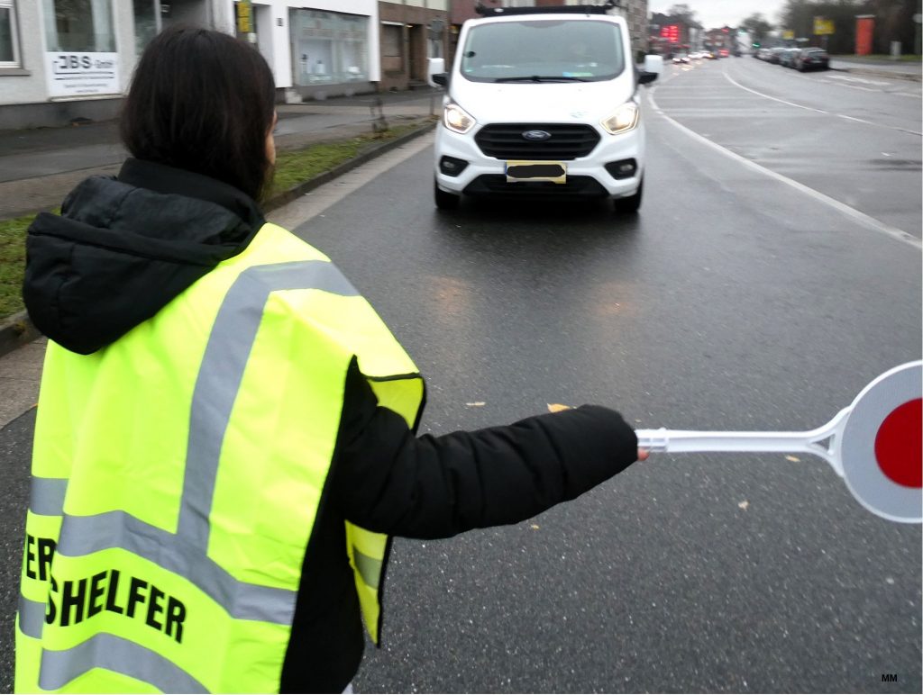 Im geeigneten Moment treten die Lotsinnen entschlossen auf die Fahrbahn und halten mit ihren Kellen den Verkehr kurz an. Und sobald die Schüler die andere Straßenseite erreicht haben, wird der Verkehrsfluss wieder freigegeben.